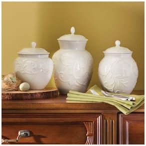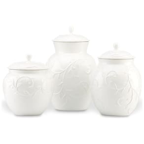 Descrição: Adicione um toque de elegância à sua cozinha com este conjunto de potes esculpidos da Lenox. Projetados com um acabamento em porcelana branca sofisticada, esses potes são perfeitos para armazenar seus ingredientes favoritos ou para servir em ocasiões especiais.