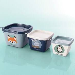 Conjunto de 3 Potes Infantil Conect Plasútil Personagem 140 ml, 270 ml e 470 ml. - PETIT AZUL
