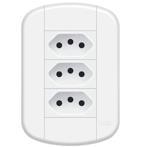 Conjunto de 3 Tomadas 2P+T 10A/250 Volts Blanc Mais - 11239214 - FAME