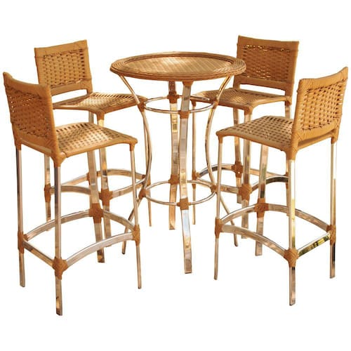 Conjunto De 4 Banquetas E Bistrô Em Alumínio Para Edícula, Cozinha, Salão Trama - Marrom