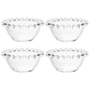 Encante-se com o Conjunto de 4 Bowls de Cristal Pearl da Wolff, cada um medindo 9cm de diâmetro e 4cm de altura.