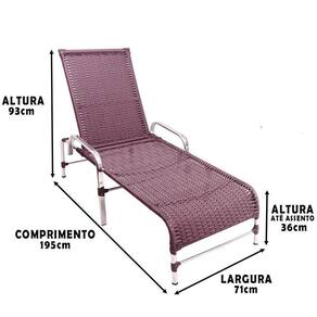 Combo para área externa e piscina em alumínio Trama Espreguiçadeiras com regulagem catar + Cadeiras Emily + Mesa de centro Garden ALUMÍNIO MAIS RESISTENTE DO QUE FERRO, NÃO ENFERRUJA E MAIOR DURABILIDADE!Itens incls: 4 Cadeiras;2 Espreguiçadeiras;1 Mesa de centro.Especificação do produto.- Acabamento: Fibra sintética com UV Protection;- Estrutura.: Alumínio, não enferruja, não descasca;- Solda: Solda Mig, de alta resistência.GARANTIA: 1 ano de fábrica.REGULAGEM: 7 posições.FABRICANTE: TRAMA MEDIDAS:Espreguiçadeira: 36cm ALT até assento x 93cm ALT total x 71cm LARG x 1,95cm PROFCadeira: 41cm ALT até assento x 80 cm ALT total x 53cm LARG x 64cm PROFMesa: 0,45 ALT x 0,45 LARG x 0,45 PROFAMBIENTES: Externa, Piscina, praia, edícula, varanda, área de Lazer, área de descanso.Nossos produtos são de altíssima qualidade, leve e com design moderno, garantindo assim conforto e praticidade para seu bem-estar.Fabricado em alumínio polido e revestida em fibra sintética.Mais leve e resistente do que o Ferro, o Alumínio também pode ser molhado, pois não enferruja, a durabilidade cerca de 8 a 10 anos. Nossos produtos são ideias para decorar ambientes clássicos e modernos, interno e externo como: Cozinha, Sala, Quarto, Varanda, Sacada, Edícula, Área de Piscina, Jardim, Área de lazer, Festa, Reunião, Churrasco, Área Gorumet, Recepção, Sala de espera, Sala de Filmes entre outros.Fibra Sintética especial - Sua proteção UV proporciona maior durabilidade, resistente ao Sol e Chuva com proteção UV.A fibra sintética da Trama /UP Mobille é produzida com materiais de altíssima qualidade.Essa característica oferece resistência suficiente para o móvel ser em decorações de ambientes externos.Design Moderno Combinação em vários ambientes com traços modernos e clássicos, para todos os gostos!Fácil de Limpar Utilize Sabão Neutro para a limpeza das fibras e estruturas.Para deixar o alumínio brilhoso, utilize BRASSO ou SILVO em pouca quantidade, mantendo assim o brilho de suas peças.Passe um pouco com um pano macio, logo em seguida, passe outro pano macio, porém seco. Deixando assim, com o brilho novamente!OBS: As Tonalidades podem variar devido a calibração de cada monitor / Tela Visualizador.Antes de comprar o seu produto verifique se as medidas correspondem com o espaço que tem disponível.TGA - Você também pode buscar por - Conjunto de espreguiçadeira, espreguiçadeira com regulagem, conjunto de esteiras, jogo de espreguiçadeira, espreguiçadeira para bronzear, Espreguiçadeira com regulagem, Esteira para bronzear, cadeira para área de piscina, Espreguiçadeira catar, espreguiçadeira para piscina, espreguiçadeira para praia, espreguiçadeira e mesa, espreguiçadeira para jardim, espreguiçadeira confortável, espreguiçadeira regulável, Conjunto de cadeiras, cadeiras para área externa, Jogo de Cadeiras..
