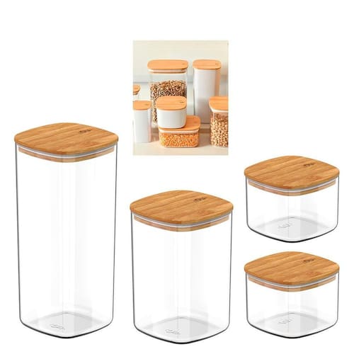 O Kit com 4 Potes Herméticos Keep é perfeito para quem valoriza organização e cuidado com os alimentos, promovendo tranquilidade e bem-estar em cada detalhe da rotina. Com tampas em bambu, um material 100% renovável, esse kit é uma opção sustentável e sofisticada para decorar e organizar a sua casa.