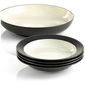 Inclui 5 peças: 4 pratos fundos para salada ou massas e 1 tigela para massa ou saladas.
