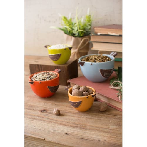 kalalou cdv1673 conjunto/4 de cerâmica pássaro chefe tigelas de preparação