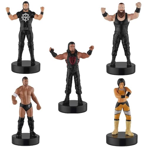 Torne-se parte da sensação Nada faz o sangue bombear como uma partida da WWE. Mergulhe no com o PMI! Seus selos da WWE permitem que você lute junto com seus favoritos com calças de selo autotintadas e blusas de bonecos de ação. Equos com tecnologia de autopintura, seus carimbos da WWE imprimem um toque de personalidade em qualquer projeto. Na parte inferior da figura, há um selo do rosto do campeão com tinta preta, vermelha, roxa ou azul suficiente para durar cerca de 200 selos. Fortaleça papéis timbrados, fortaleça os papéis escolares, decore artesanato e muito mais!