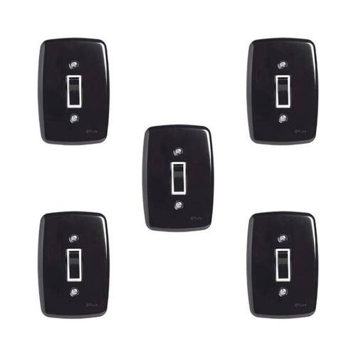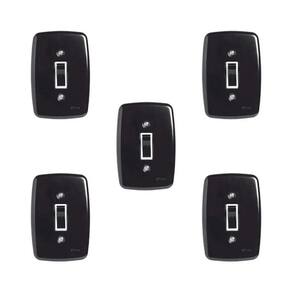 Com design retro esse conjunto é utilizado para o acionamento manual da iluminação (liga/desliga) em diversos ambientes residenciais, comerciais ou industriais. As placas e teclas são produzidos em ABS e com tratamento anti-UV garantindo a cor e o brilho por muito mais tempo. Altura do Conjunto: 12.5 cm Ambiente: null Ambiente Principal: Sala de Estar Cor: Preto Cor Predominante: Preto Garantia do Fornecedor: 5 anos Informação Complementar: 5x Interruptor de 1 Tecla Simples com Placa 4x2 Preto Largura: 8.5 Altura: 12.5 Peso: 0.034