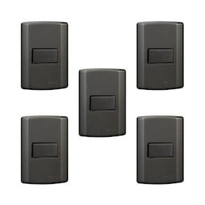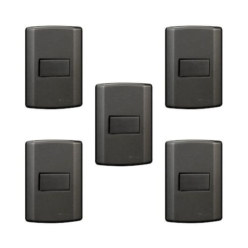 Com design sofisticado esse conjunto é utilizado para o acionamento manual da iluminação (liga/desliga) em diversos ambientes residenciais, comerciais ou industriais. As placas e teclas são produzidos em ABS e com tratamento anti-UV garantindo a cor e o brilho por muito mais tempo. Altura do Conjunto: 12.5 cm Ambiente: null Ambiente Principal: Sala de Estar Cor: Cinza Cor Predominante: Cinza Garantia do Fornecedor: 5 anos Informação Complementar: 5x Interruptor de 1 Tecla Simples, Modular, com Placa 4x2 e Suporte Grafite Largura: 8.5 Altura: 12.5 Peso: 0.058