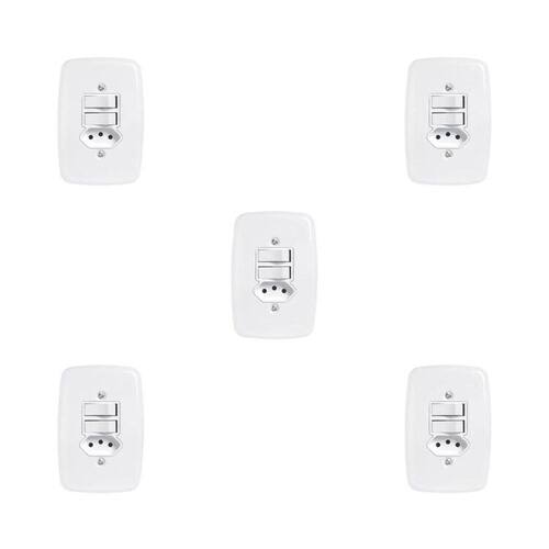 Com design sofisticado esse conjunto é utilizado para o acionamento manual da iluminação (liga/desliga) e permite a conexão dos aparelhos e dispositivos à rede elétrica em diversos ambientes residenciais, comerciais ou industriais. Nossas placas e teclas são produzidos em ABS e com tratamento anti-UV garantindo a cor e o brilho por muito mais tempo Altura do Conjunto: 18 cm Ambiente: null Ambiente Principal: Sala de Estar Cor: Branco Cor Predominante: Branco Garantia do Fornecedor: 5 anos Informação Complementar: 5x Interruptor de 2 Teclas Simples e Tomada 2p+t 20A , com Placa 4x2 Branco Largura: 12 cm Altura: 18 cm Peso: 0,064 g
