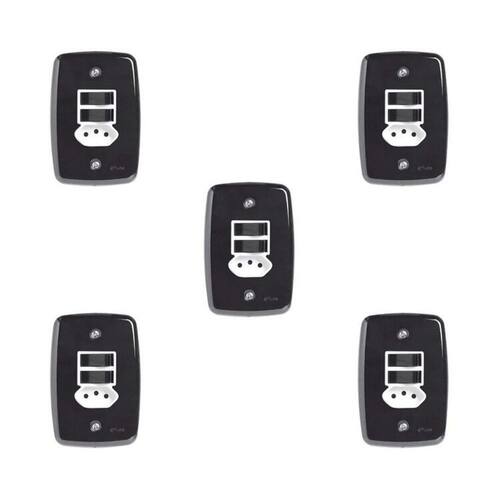 Com design sofisticado esse conjunto é utilizado para o acionamento manual da iluminação (liga/desliga) e permite a conexão dos aparelhos e dispositivos à rede elétrica em diversos ambientes residenciais, comerciais ou industriais. Nossas placas e teclas são produzidos em ABS e com tratamento anti-UV garantindo a cor e o brilho por muito mais tempo Altura do Conjunto: 18 cm Ambiente: null Ambiente Principal: Sala de Estar Cor: Preto Cor Predominante: Preto Garantia do Fornecedor: 5 anos Informação Complementar: 5x Interruptor de 2 Teclas Simples e Tomada 2p+t 20A , com Placa 4x2 Preto Largura: 12 cm Altura: 18 cm Peso: 0,068 g