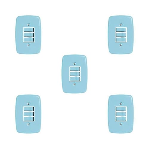 Com design retro esse conjunto é utilizado para o acionamento manual da iluminação (liga/desliga) em diversos ambientes residenciais, comerciais ou industriais. As placas e teclas são produzidos em ABS e com tratamento anti-UV garantindo a cor e o brilho por muito mais tempo. Altura do Conjunto: 18 cm Ambiente: null Ambiente Principal: Sala de Estar Cor: Azul Cor Predominante: Azul Garantia do Fornecedor: 5 anos Informação Complementar: 5x Interruptor de 3 Teclas Simples com Placa 4x2 Azul Largura: 12 cm Altura: 18 cm Peso: 0,0620 g