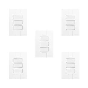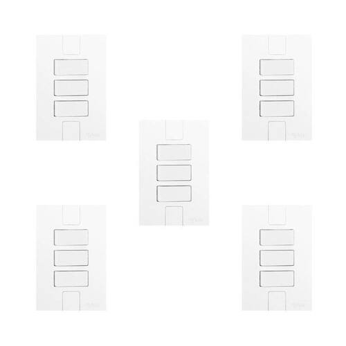 Com design moderno e linhas retas esse conjunto é utilizado para o acionamento manual da iluminação (liga/desliga) em diversos ambientes residenciais, comerciais ou industriais. As placas e teclas são produzidos em ABS e com tratamento anti-UV garantindo a cor e o brilho por muito mais tempo. Altura do Conjunto: 18 cm Ambiente: null Ambiente Principal: Sala de Estar Cor: Branco Cor Predominante: Branco Garantia do Fornecedor: 5 anos Informação Complementar: 5x Interruptor de 3 Teclas Simples com Placa 4x2 Branco Largura: 12 cm Altura: 18 cm Peso: 0,087 g