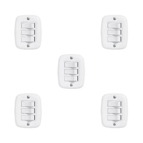 Com design compacto esse conjunto Sobreplus é utilizado para o acionamento manual da iluminação (liga/desliga) em diversos ambientes residenciais, comerciais ou industriais. As placas e teclas são produzidos em ABS e com tratamento anti-UV garantindo a cor por muito mais tempo. Altura do Conjunto: 18 cm Ambiente: null Ambiente Principal: Sala de Estar Cor: Branco Cor Predominante: Branco Garantia do Fornecedor: 5 anos Informação Complementar: 5x Interruptor de 3 Teclas Simples com Placa de Sobrepor Branco Largura: 12 cm Altura: 18 cm Peso: 0,075 g