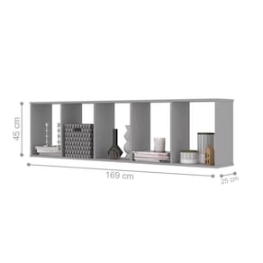 Cores do Produto (FILTRO DE CORES): Cinza | Comprimento do Produto (cm): 25 | Material Principal: MDP | Largura Produto Com Embalagem (cm): 34 | Comprimento Produto Com Embalagem (cm): 173 | Produto precisa de Montagem?: Sim, a montagem é simples mas sugerimos a contratação do serviço de montagem (para os CEPs em que o serviço está disponível) ou de algum experiente de sua preferência | Peso do Produto (Kg): 14,4 | COMPRIMENTO PRODUTO COM EMBALAGEM (CM): 173 | Largura do Produto (cm): 169 | Cor Predominante: Cinza | Estado de Origem: SP | PESO DO PRODUTO (KG): 15,2 | Peso Produto Com Embalagem (Kg): 15,2 | Descrição do Tamanho: 169x45x25 cm | LARGURA PRODUTO COM EMBALAGEM (CM): 34 | Instruções/Cuidados: Limpar com pano macio e seco, não utilizar produtos abrasivos. | PESO PRODUTO COM EMBALAGEM (KG): 15,2 | Conteúdo da Embalagem: 5 Nichos | ALTURA DO PRODUTO COM EMBALAGEM (CM): 10 | Material para Filtro: MDP | CORES DO PRODUTO (FILTRO DE CORES): Cinza | Altura do produto (cm): 45 | COR PREDOMINANTE: Cinza | Altura do Produto com Embalagem (cm): 10