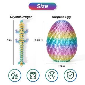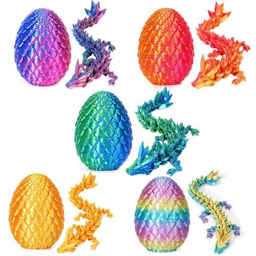 Ovo de dragão impresso em 3D, 5 peças - ?Conjunto colorido de ovos de dragão? - Ilumine a imaginação do seu filho com nossos 4 ovos de dragão coloridos, cada um com uma cor divertida! Perfeito para colecionadores e pequenos aventureiros que amam dragões. - Design peculiar: cada ovo de dragão impresso em 3D é preenchido com detalhes encantadores, desde escamas realistas até um rabo divertido. As crianças vão adorar abri-las para descobrir seu novo amigo dragão dentro! - Diversão o ano todo: estes ovos de dragão são perfeitos para todas as ocasiões! Use-os para decorar o Dia das Bruxas ou adicione-os a exibições de férias. Eles trazem alegria e criatividade para qualquer celebração! - ? Tempo de diversão interativo: o dragão de cristal articulado pode ser retirado para diversão sem fim! As crianças podem torcer, girar e mexer com ele, tornando-o um alívio de desconforto perfeito para mãos pequenas. Quando não estiver em uso, o dragão pode orgulhosamente ser uma peça de exibição exclusiva. - Seguro para mãos pequenas: feito de material PLA ecológico para crianças, nosso dragão é seguro para brincar. Apenas um lembrete: as bordas do dragão de cristal podem ser afiadas, então supervisione os pequenos durante a brincadeira!