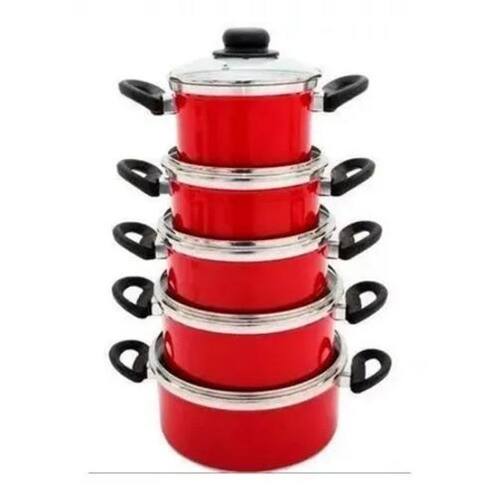 São panelas feitas em alumínio batido grosso 3 mm de espessura com tampas de vidro de excelente qualidade. Tem pintura especial anti riscos evite usar materiais abrasivos para lavar a parte externa e cabos em plástico industrial que não esquentam, não derretem e não quebram