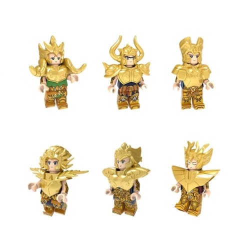 Zodiac Knights: Set 6 Golden Legocompatible (M2) Tamanho: 4,5 cmMaterial: plástico Produto importado The Knights of Zodiac é uma série de mangá que consiste em um grupo de guerreiros, que se autodenominam Cavaleiros. O protagonista é Seiya, que possui a armadura de Pegasus. Esses guerreiros lutam contra as forças do mal que desejam dominar a terra.
