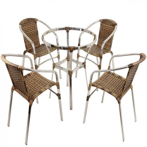Conjunto De 6 Cadeiras E Mesa Floripa Em Alumínio Trama Capuccino - Marrom