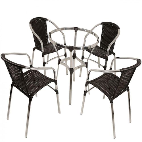 Produzidos em estrutura de alumínio polido e revestida em fibra sintética. Mais leve e resistente do que o Ferro, o Alumínio também pode ser molhado, pois não enferruja. Possuem proteção UV, aumentando sua durabilidade contra ações do tempo. Podendo ficar exposto à sol e chuva por bastante tempo.