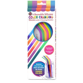 Collections Etc Canudos reutilizáveis que mudam de cor ecológicos, conjunto de 6