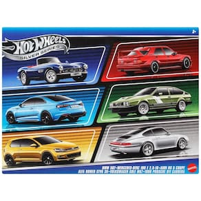 O Conjunto Hot Wheels Estilo Europeu vai acelerar qualquer coleção de carros, trazendo seis carros de brinquedo em escala 1:64 que exemplificam o estilo europeu. Cada um desses veículos de metal fundido apresenta uma execução decorativa mais refinada do que os carros básicos da Hot Wheels, sendo ideal para colecionadores. Existem outros conjuntos temáticos, como ZAMAC, HW Legends e Streets of Japan, que os fãs vão querer ter todos. Cada item é vendido separadamente, sujeito a disponibilidade. Estilos, cores e decorações podem variar. O Conjunto Hot Wheels Estilo Europeu inclui 6 veículos em escala 1:64 com modelos baseados em fabricantes de automóveis europeus populares. Cada carro de metal fundido tem uma execução mais refinada do que os veículos básicos da Hot Wheels, com detalhes completos na frente e atrás para atrair colecionadores. Outros temas de conjuntos incluem ZAMAC, Streets of Japan e carros HW Legends, que os fãs vão querer colecionar todos. Cada item é vendido separadamente. Dê um gás em sua coleção existente de Hot Wheels com este conjunto de 6 carros ou inicie uma nova coleção com veículos oficialmente licenciados da Alfa Romeo, BMW, Volkswagen, Porsche, Audi e Mercedes Benz. Crianças a partir de 3 anos e colecionadores vão adorar cada veículo para brincar ou exibir.