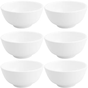 Conjunto de 6 Cumbucas de Porcelana Brancas 200ml Bowls Lyor Clean Pequenos 10,5x5cm.