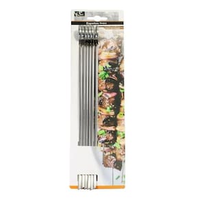 Contém 6 espetos em aço inoxidável de 30 cm.