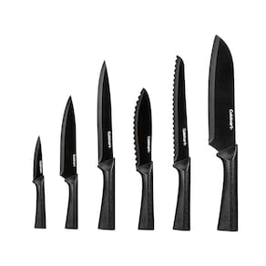 De aço inox, suas lâminas ultra-afiadas possuem revestimento antiaderente com o charme da cor preta metálica! São 6 facas que trazem requinte e sofisticação na sua cozinha ou espaço gourmet, e qualidade no corte de variados alimentos!