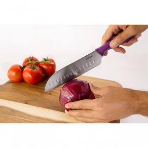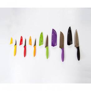 Conjunto De 6 Facas Em Aço Inox Com Capa Colorida Zyliss Este conjunto conta com as principais e mais utilizadas facas do dia a dia. Cada peça possui cabo emborrachado que garante um manuseio confortável. Lâmina super afiada produzida em aço inox de alta qualidade que garante precisão de corte e tempo de vida útil prolongado à peça. Ofereça personalidade e praticidade à sua cozinha. Desenvolvida pela Suíça Zyliss, marca mundialmente reconhecida por seu portfólio atraente de utensílios e visão de antecipar mudanças e tendências do estilo de vida de seus técnica:- Código: 4088590575- Marca: Zyliss- Conteúdo da Embalagem: 6 Facas coloridas com capa - Especificações do produto:Faca preta - Faca do Chef: 33,5 cm (Comprimento)Faca roxa - Faca Santoku: 32 cm (Comprimento)Faca verde - Faca Utilitária: 26,5 cm (Comprimento)Faca vermelha - Faca Serrilhada: 21 cm (Comprimento)Faca laranja - Faca para Legumes: 20,5 cm (Comprimento)Faca amarela - Faca para Descascar: 18,5 cm (Comprimento)- Material: Cabo emborrachado e Lâmina em aço inox- Cor: - Peso: 1,9kg- Dimensões: 6cm x 18cm x 36cm (AxLxP)- Garantia: 2 anos Sobre a Marca - Fundada em 1948 pelo suíço Karl Zysset, a Zyliss lançou seu primeiro produto, o espremedor de alho, que atravessou décadas de sucesso em todo o mundo, além de ser a inventora do Salad Spiner e do Chopper. Hoje, a marca possui um portfólio atraente e invejável de utensílios para cozinha, com inúmeros produtos que ganharam o cobiçado prêmio de design Red Dot Award e tornaram-se inspiração de criatividade para todos. O que torna a Zyliss única? Seu modo de pensar! Eles acreditam que não basta compreender o que os clientes querem, é preciso antecipar as mudanças e as tendências do estilo de vida deles. Composição - 1 Faca Chef preta de 19cm; 1 Faca Santoku roxa de 18cm; 1 Faca utilitária verde de 14cm; 1 Faca serrilhada laranja de 9cm; 1 Faca para frutas de 9cm; 1 Faca para legumes de 6cm. Garantia - 2 Anos Mais Informações - Medidas aproximadas da embalagem: Altura: 6cm Largura: 18cm Comprimento: 36cm Peso: