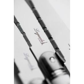 Toda a tradição das facas Laguiole é encontrada na linha Luxo. A lâmina é feita em aço inoxidável de altíssima qualidade com cabo em ABS branco. O conjunto de facas é entregue em um elegante cepo de madeira.