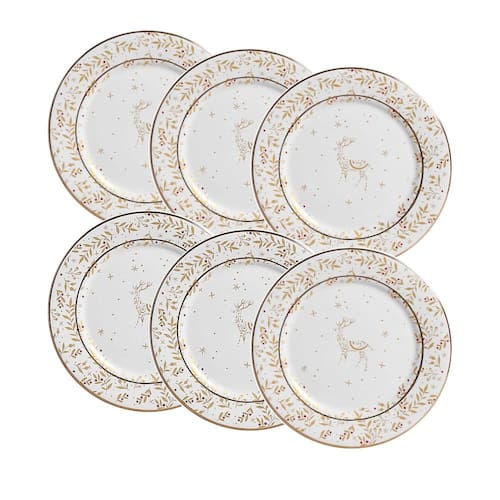 Conjunto de 6 Pratos de Sobremesa Christmas Lights de Cerâmica 20cm - Scalla