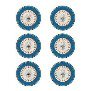 Conjunto Com 6 Pratos Para Sobremesa Alleanza Olho Grego Branco E Azul Para você que busca personalizar e ainda decorar a mesa de jantar com requinte e beleza o Conjunto De Pratos da Alleanza é ideal. Produzido em cerâmica, traz toda qualidade para servir e deixar o ambiente sofisticado. São peças para você convidar os amigos e familiares e preparar deliciosas receitas. Pode ser levado ao micro-ondas e lava louças, exceto peças filetadas a ouro e prata. Peças elaboradas em materiais de baixa absorção e alta resistência, com processo de decoração digital, sobre base branca. Garanta um Conjunto que agrega elegância, estilo e praticidade.