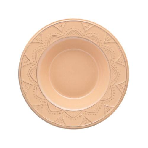 O modelo Serena mescla a sutileza do clássico com a suavidade do romantismo. Os detalhes em alto-relevo que decoram as peças dessa coleção foram inspirados nas mandalas. Mandala é uma palavra em sânscrito que significa círculo e é conhecida como um símbolo universal da integração e harmonia. As mandalas geralmente apresentam padronagens geométricas, florais e, algumas vezes, de figuras humanas. Muito presente nas culturas budista e hinduísta, esse elemento já se tornou referência no mundo todo. Louças com detalhes em relevo continuam em alta. A Oxford, de olho nessa tendência, apresenta mais um conjunto de pratos fundos com alto-relevo. A novidade na coleção Serena Nectarina, além de seu tom único, está no acabamento reagente. Com a aplicação deste esmalte, cada peça se torna única. Uma coleção clássica com tons de exclusividade para deixar sua mesa ainda mais encantadoraConteúdo da embalagem: 6 Pratos fundos 23 cm- Garantia: 3 Meses para Defeitos de fabricação- Marca: Oxford- Uso: Resistente a micro-ondas e lava-louças - Tipo da embalagem: Papelão pardo- Material: Cerâmica- Cor: Laranja- Decoração: Monocromático- Tipo do jogo: Prato Fundo- Formato: Redondo- É produto personalizado: Não- Formato de venda: Kit- Unidades por kit: 6- Diâmetro: 23cm