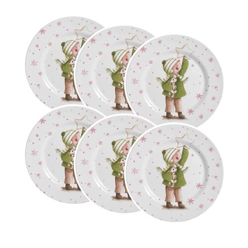 Conjunto de 6 Pratos Sobremesa de Cerâmica Boy Sweet Christmas 21cm - Alleanza
