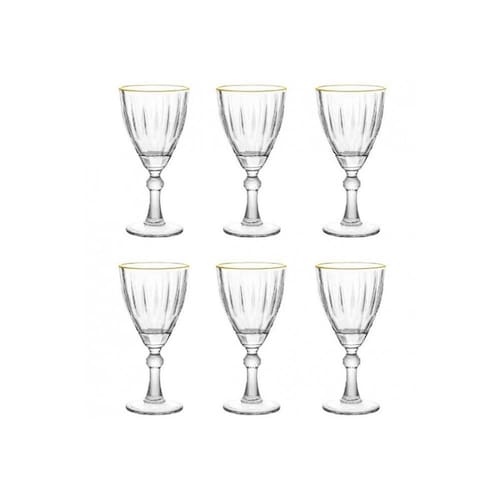1 Conjunto de 6 Taças para Água e Vinho Transparente com Borda Dourada 275ml Premium TCVN010TR - Hauskraft