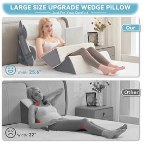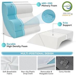 Os travesseiros de cunha de cama KINGFUN são uma excelente opção para quem busca suporte sólido ao pescoço, ombros, pernas e costas em todas as posições. Com um design ergonômico, é possível encontrar a posição mais confortável para dormir ou sentar e sentir os benefícios de um alinhamento natural da coluna ereta. O travesseiro cirúrgico KINGFUN é multifuncional, composto por quatro partes que podem ser combinadas para escolher um ângulo adequado para sentar, deitar e dormir. Além disso, é possível utilizar o travesseiro de elevação das pernas para aliviar desconfortos e pressão nas pernas e joelhos, e o travesseiro de espuma alongado como apoio para a cabeça ou braço. O design antiderrapante conta com zíperes de dois lados para fácil remoção e limpeza, além de uma alça nas grandes almofadas de apoio para as costas para facilitar o transporte. Todos os travesseiros em cunha apresentam espuma de memória de alta densidade e melhor recuperação, que se ajusta melhor à curva do corpo e oferece suporte total, reduzindo a agitação e a reviravolta durante o sono. O conteúdo da embalagem inclui 6 travesseiros e uma bolsa de viagem para armazenamento.