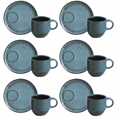 Conjunto de 6 Xícaras de Chá com Pires Stoneware Linhas Night Sky 230ml - Porto Brasil
