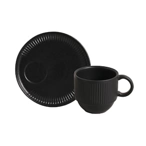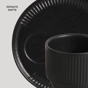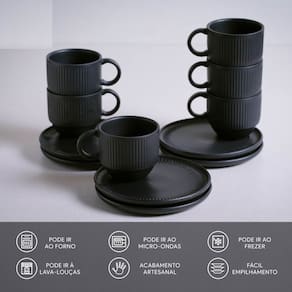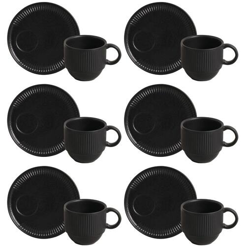 Conjunto de 6 Xícaras de Chá com Pires Stoneware Linhas Preto Matt 230ml - Porto Brasil