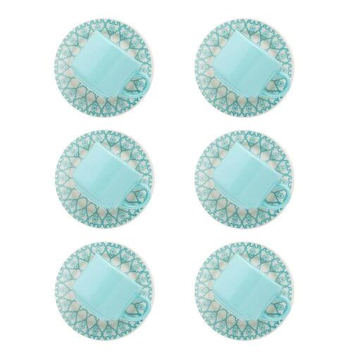Conteúdo da embalagem: 6 xícaras para chá com 200ml de capacidade / 6 pires para chá com 14cm de diâmetro - Garantia: 12 Meses para Gretagem - Uso: Resistente a micro-ondas e lava-louças - Tipo da embalagem: Papelão pardo - Tipo: Xícara - Cor: Azul-claro - Decoração: Estampado - Material: Cerâmica - Formato: Redondo - Nome do desenho: Donna Mandala - Capacidade em volume: 200ml