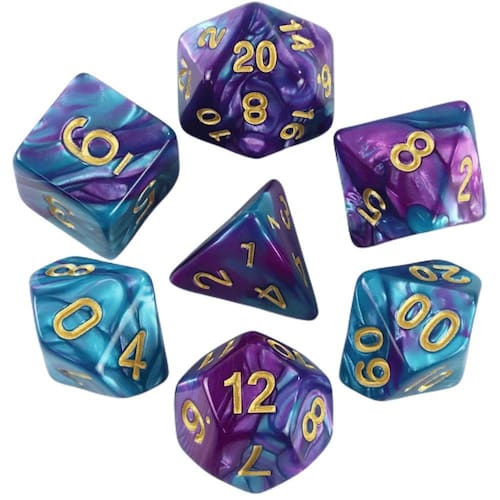 CONJUNTO DE 7 DADOS COLORIDOS PARA RPG DE ACRÍLICO VÁRIAS CORESDados efeito mix-color, com números douradosCor: 9 cores para a escolha com um saco pequeno Materiais: AcrílicoPacotes Inclui:7 peças dados/conjunto1 peça D4 dados1 peça D6 dados1 peça D8 dados1 peça D10(0-9) dados1 peça D %(00-90) dados1 peça D12 dados1 peça D20 dados+ 1pc Bolsa preta - ideal para guardar e transportar seus dados com segurança.A empresa BLLE não aceita devoluções com as seguintes irregularidades, constantes no código do consumidor:- Rompimento dos lacres de autenticidade e garantia do produto;- Produto danificado por queda;- Produto sujo, com sinais de exposição a altas temperaturas indevidas e exposto diretamente a água, chuva e areia.- Qualquer outra irregularidade que torne o produto inapropriado para venda como novo.Produto comercializado pela BLLE de excelente qualidade, beleza e custo-benefício.OBS.:- Produto destinado exclusivamente a prática esportiva;- Manter fora do alcance de crianças;- Este produto não é um brinquedo.Enviamos seu produto em até 24 horas, exceto sábado, domingo e feriado. Marca: BLLE