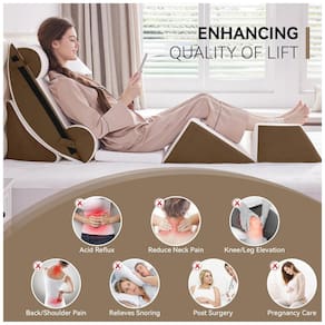 Este conjunto de travesseiros ortopédicos em cunha é ideal para recuperação pós cirúrgica, aliviando a dor da cirurgia, desconforto nas costas, pescoço e ombros, refluxo ácido, DRGE e muito mais. Com um design ergonômico, oferece mais de 16 maneiras de usá lo, proporcionando conforto personalizado e suporte de corpo inteiro para ler, assistir TV ou relaxar. O travesseiro de cunha traseira ajuda a manter o alinhamento natural da coluna, aliviando a tensão no pescoço, costas e quadris. Os travesseiros apresentam espuma de memória macia que permanece confortável, mesmo com uso prolongado. Além disso, as capas são removíveis e laváveis à máquina com zíperes de grande abertura, tornando a limpeza simples. Disponível em vários tamanhos e cores, este conjunto de travesseiros em cunha é uma opção de presente pensativa para entes queridos que buscam melhorar a qualidade e o conforto do sono. Nota os travesseiros em cunha são embalados a vácuo para envio ideal. Basta esperar de 12 a 24 horas para que eles se expandam completamente antes de desfrutar de um sono reparador e suporte.