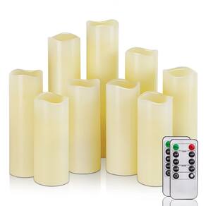 Homemory Velas sem chama, velas pilares LED operadas por pilar, velas falsas, velas elétricas, controle remoto e temporizador, cera real, marfim, 10 cm 12,7 cm 15 cm 17,7 cm 20,3 cm 23 cm, conjunto de 9 - Aplicável a vários cenários: estas velas sem chama de cera Homemory são ideais para decoração de interiores, você pode colocá-las na mesa de jantar, lareira, mesa ou lanternas internas, mesmo como uma atmosfera à luz de velas colocada na sua cabeceira. Se você tiver um evento especial ou festival, eles também são uma ótima opção de velas decorativas. - Pacote de vários valores: Este conjunto de velas inclui 9 velas sem chama de vários tamanhos, você pode concentrá-las ou colocá-las separadamente de acordo com suas necessidades. Cada vela LED requer duas pilhas AA, e com baterias de alta qualidade, elas serão mais brilhantes e durarão mais de 500 horas sem a necessidade de substituir constantemente por novas baterias. - Funções convenientes: nossas velas sem chama com controle remoto permitem que você ajuste o brilho, modos de cintilação e defina um temporizador de 2H/4H/6H/8H para economizar problemas ao ligar e desligar essas velas de bateria. Por exemplo, defina 2h às 20:00, as velas LED desligarão automaticamente às 22:00, voltam às 20:00 no dia seguinte e pedalam a cada 24 horas. - A segurança vem em primeiro lugar: apenas aproveite todos os benefícios das velas operadas por bateria e o risco de incêndio não deve ser uma preocupação. Chega de pingar cera quente, fumaça ou se preocupar em adormecer sem apagar o fogo ao usar essas velas falsas. Como são velas elétricas de cera real, mantenha-as longe de ambientes de alta temperatura. - O pacote inclui 9 x velas LED pilar (D2,2" x A 4" 4" 5" 5" 6" 6" 7" 8" 9", sem pilhas AA), 2 x controle remoto (baterias CR2025 equipadas), 1 x manual de uso (sem garantia de versão em português). Se você tiver alguma dúvida, sinta-se à vontade para entrar em contato conosco clicando em "entrar em contato com o vendedor" para resolvê-las.