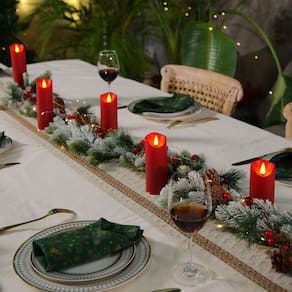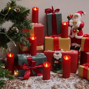 Homemory Velas sem chama bordô, velas operadas por bateria com temporizadores remotos, velas falsas elétricas para casa, decoração de Natal, feitas de plástico, conjunto de 9 - Aplicável a cenários temáticos: estas velas Homemory bordô sem chama são ideais para decoração de Natal ou festas temáticas, você pode colocá-las na mesa de jantar, lareira, mesa ou dentro das lanternas, elas também são ótimas para decoração diária da casa. - Velas de plástico vermelhas realistas: estas velas operadas por bateria são bem feitas de plástico fosco com pavios 3D, o que torna as velas de LED mais realistas sem se preocupar com derretimento. Elas são ótimas em ambientes internos ou externos (não derretem, mas não são à prova d'água). - Funções remotas convenientes: você pode controlar essas velas elétricas remotamente quando elas são colocadas em algum lugar difícil de tocar. Definir um temporizador 2H/4H/6H/8H vai poupar o seu problema de ligá-los/desligá-los, porque eles voltarão a ligar automaticamente ao mesmo tempo todos os dias. Além disso, você pode ajustar os modos de luz (cintilação/brilho constante) e o nível de brilho conforme desejar. - Segurança em primeiro lugar: aproveite estas velas LED com todos os benefícios das velas tradicionais e nenhum dos negativos! Sem cera quente, sem fumaça ou se preocupe em adormecer sem soprar as velas. Não derrete e não faz bagunça! - O pacote inclui: este conjunto de velas Homemory inclui 9 velas bordô sem chama (D2,2 "x H5" 5"5"16"6"17.8 cm), 2x controle remoto, 1x manual do usuário (sem garantia de versão em português). Cada vela é alimentada por 2 pilhas AA (mais de 500 horas com baterias de alta qualidade). Todas estas velas foram rigorosamente testadas.