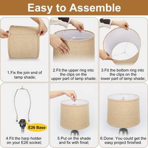 - Encaixe em aranha: adotando instaladores de aranha, os abajures marrons são projetados para ficarem no topo das harpas, acima das lâmpadas, e fixados por meio de remates aparafusados. Para sua conveniência, as harpas e remates E26 Base já estão incluídos.
