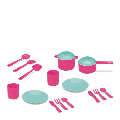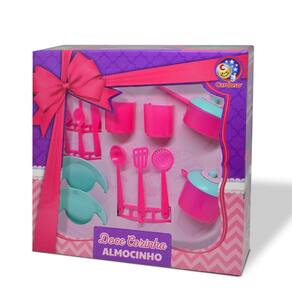 Conjunto De Acessórios Para Brincar Doce Cozinha Almocinho Esse lindo Kit Doce Cozinha Almocinho da Cardoso Toys vem com panelinhas, pratinhos, talheres, copos e utensílios para que a brincadeira fique muito mais divertida. As crianças vão adorar brincar de cozinhar igual a sua mamãe, além disso, vai ajudar no desenvolvimento da capacidade visual, afetividade e interação entre pais e filhos. É feito de plástico, acompanha 02 panelas com tampa - 01 Concha - 01 Escumadeira - 01 Espátula - 02 Copos - 02 Pratos - 02 Garfos - 02 Facas - 02 Colheres Somente na cor rosa e tampa azul As medidas são Largura 7,6cm Altura 30cm Profundidade 30,7cm Certificação Inmetro CEBri/IQB 000477 Marca: Não Informado Ean: 7896484120043