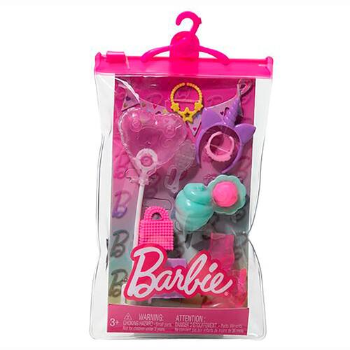 A boneca Barbie está sempre pronta para uma aventura, e seu visual também precisa estar pronto. Esses pacotes de acessórios da Barbie inspiram estilo e narrativa com 11 peças coloridas, escolha entre temas inspirados em festas, musica, dança, roupas de cowboy e muito mais. Os itens incluem acessórios de moda como chapéus, sapatos e bolsas, bem como peças divertidas de narrativa que realçam o tema.