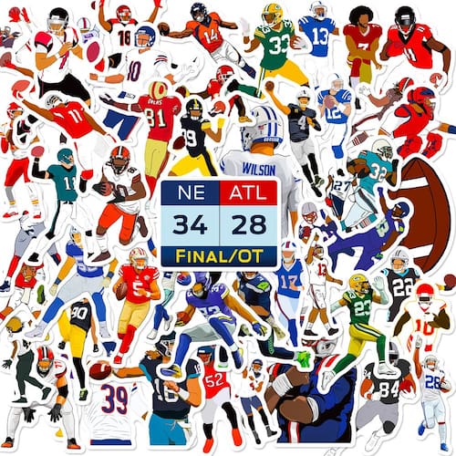 Material: papel e vinil Peso: 30-60 g Tamanho: 3-6 cm Quantidade: 50 peças Desenhos com tema de futebol: inclui 50 adesivos divertidos e coloridos com capacetes de futebol, bolas de futebol e slogans, perfeitos para fãs de futebol americano. Vinil impermeável durável: esses adesivos de vinil de alta qualidade são à prova d'água, garantindo que durem em aventuras ao ar livre e mantenham intactas suas cores vibrantes. Uso versátil: ideal para decorar laptops, skates, garrafas de água, capacetes e outros equipamentos, adicionando um toque esportivo aos seus itens pessoais. Perfeito para fãs de futebol: essencial para adolescentes, crianças e adultos que amam o futebol americano, demonstrando espírito de equipe e paixão pelo jogo. Fácil de aplicar e remover: esses decalques são simples de aplicar e são removidos de forma limpa, sem deixar resíduos, permitindo uma fácil personalização.