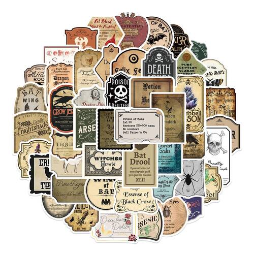 Desenhos de poções mágicas e fantásticas — Este conjunto inclui 50 adesivos de vinil de alta qualidade com ilustrações extravagantes e góticas de frascos de poções mágicas, elixires e designs com temas de fantasia, perfeitos para fãs de gêneros de magia e fantasia. Duráveis e à prova d'água — Feitos de vinil impermeável premium, esses adesivos são resistentes ao desbotamento, descamação e danos, o que os torna ideais para uso interno e externo. Ideal para personalização — Use esses divertidos adesivos com tema de poções para decorar laptops, garrafas de água, capas de celular, guitarras, diários, álbuns de recortes, malas e outros itens pessoais, adicionando um toque único e mágico. Ótimos para amantes de fantasia e gótico — Perfeitos para fãs de fantasia, temas góticos e magia, esses adesivos dão um toque encantador aos seus itens favoritos e os destacam. Fácil de aplicar e remover — Esses decalques de vinil são simples de aplicar em qualquer superfície plana e podem ser removidos de forma limpa sem deixar resíduos pegajosos, tornando-os perfeitos para projetos de bricolage e redecoração.