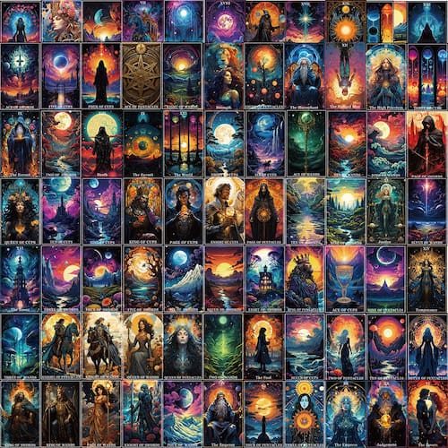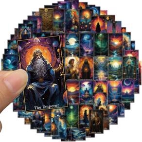 Material: papel e vinil Peso: 30-60 g Tamanho: 3-6 cm Quantidade: 56 unidades Coleção completa de tarô: inclui 56 peças de adesivos de cartas de tarô vintage com desenhos dos Arcanos Maiores e Menores — perfeitos para entusiastas do tarô e amantes da arte mística. Material de vinil durável: feitos de vinil impermeável de alta qualidade, esses adesivos são resistentes a arranhões, à prova de desbotamento e removíveis sem deixar resíduos pegajosos. Perfeito para várias superfícies: ótimo para decorar laptops, skates, diários, álbuns de recortes, garrafas de água, malas, motocicletas e muito mais para mostrar seu estilo espiritual único. Estilo retrô clássico: apresenta ilustrações inspiradas em Rider-Waite com cores ricas e obras de arte detalhadas, criando uma estética mágica e atemporal. Fácil de usar: o aplicativo Peel-and-Stick simplifica a personalização de seus pertences, ideal para projetos de bricolage, leituras de tarô e diário espiritual.