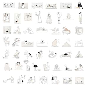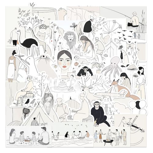 Material: papel e vinil Peso: 30-60 g Tamanho: 3-6 cm Quantidade: 50 unidades/PCS Adesivos de doodle exclusivos em preto e branco com arte minimalista, personagens fofinhos e ilustrações divertidas com uma estética criativa e moderna Feito de material de vinil impermeável de alta qualidade, perfeito para decorar capas de telefone, garrafas de água, álbuns de recortes e diários Ideal para quem gosta de designs simples, mas atraentes, com um toque de originalidade e criatividade para seus acessórios Fácil de aplicar e remover sem deixar resíduos, ótimo para personalizar itens ou criar bricolage personalizado projetos Perfeitos para quem quer adicionar um toque artístico e minimalista aos seus pertences com designs divertidos e divertidos